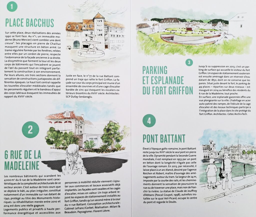 Guides réalisés par la Maison de l’architecture de Franche-Comté avec Besançon Ville d’Art et d’Histoire, en partenariat avec Renaissance du Vieux Besançon et avec le soutien de la Direction régionale des Affaires culturelles Bourgogne Franche-Comté, du Conseil de l’ordre des architectes Bourgogne Franche-Comté et de Formagraph design