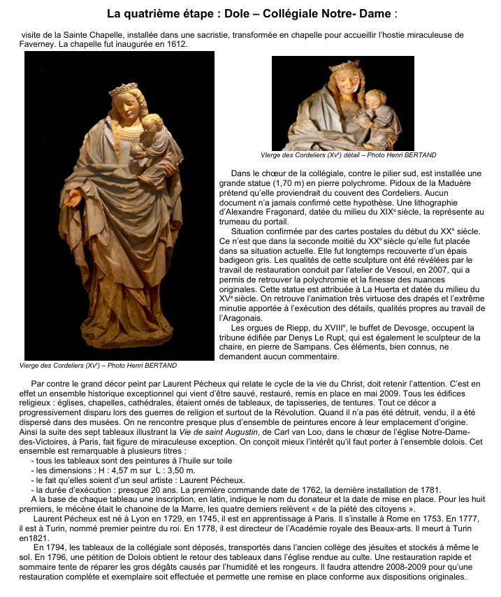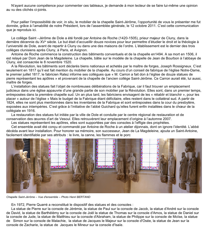 Le programme prévu pour la sortie consacrée à la statuaire bourguignonne ayant été contrariée par le refus opposé à la visite de la chapelle Saint-Jérôme à Dole, il nous a paru intéressant de parcourir à nouveau les différentes étapes de cette journée.