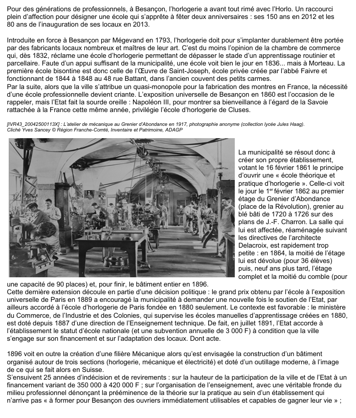 Bulletin 52 Besançon « L’Horlo », Ecole d’horlogerie