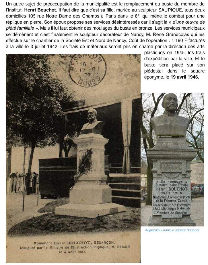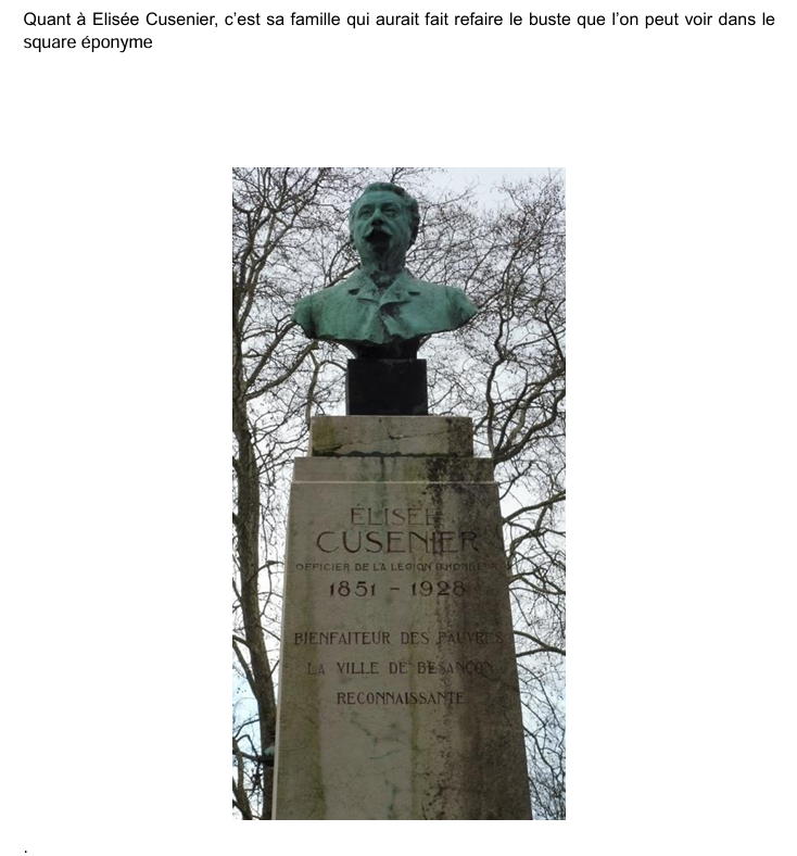 C’est le cas du monument à Pergaud, de Flore, du buste de Pasteur, du buste de l’horloger poète