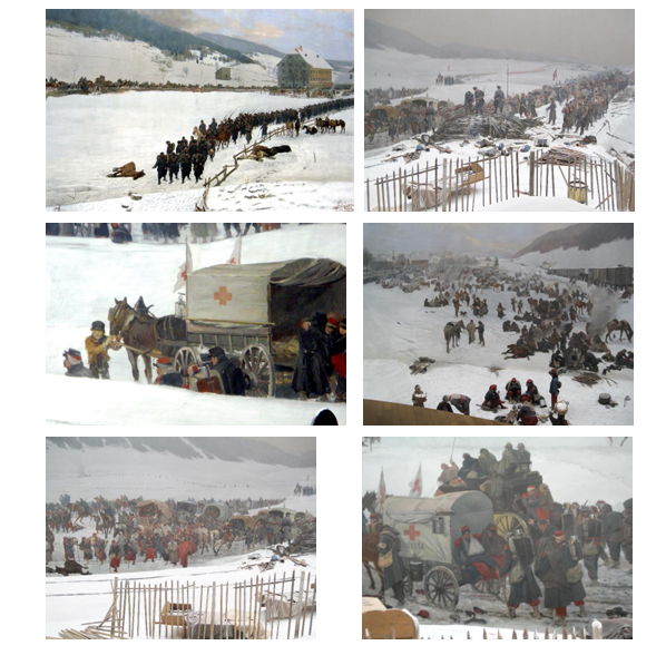 Le thème très particulier du panorama montre l’immense misère des soldats blessés, affamés et gelés qui ont passé la frontière suisse à Verrières de Joux, le 1er février 1871.