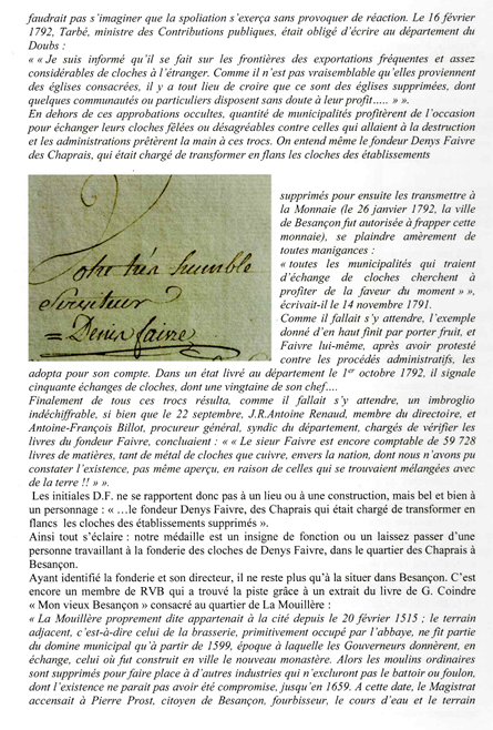 Bulletin 60 Découverte d’une médaille de la fonderie des cloches de Besançon