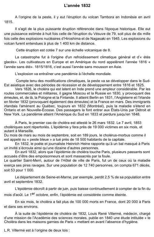 « Maintenant le choléra marchait comme un lion à travers villes et bois »