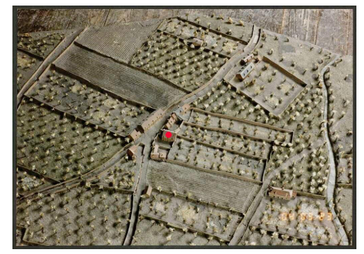 grenier. Puis appuyés contre le mur de clôture, deux petits bâtiments contigus. L’un sert d’écurie, l’autre de chambre à four avec à l’étage, une chambre surmontée d’un colombier.