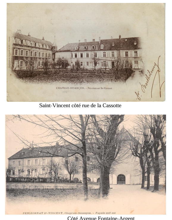 En 1962, Saint-Vincent des Chaprais, partie Sud, côté Avenue Fontaine-Argent, est vendue à l’Institution Saint-Joseph.