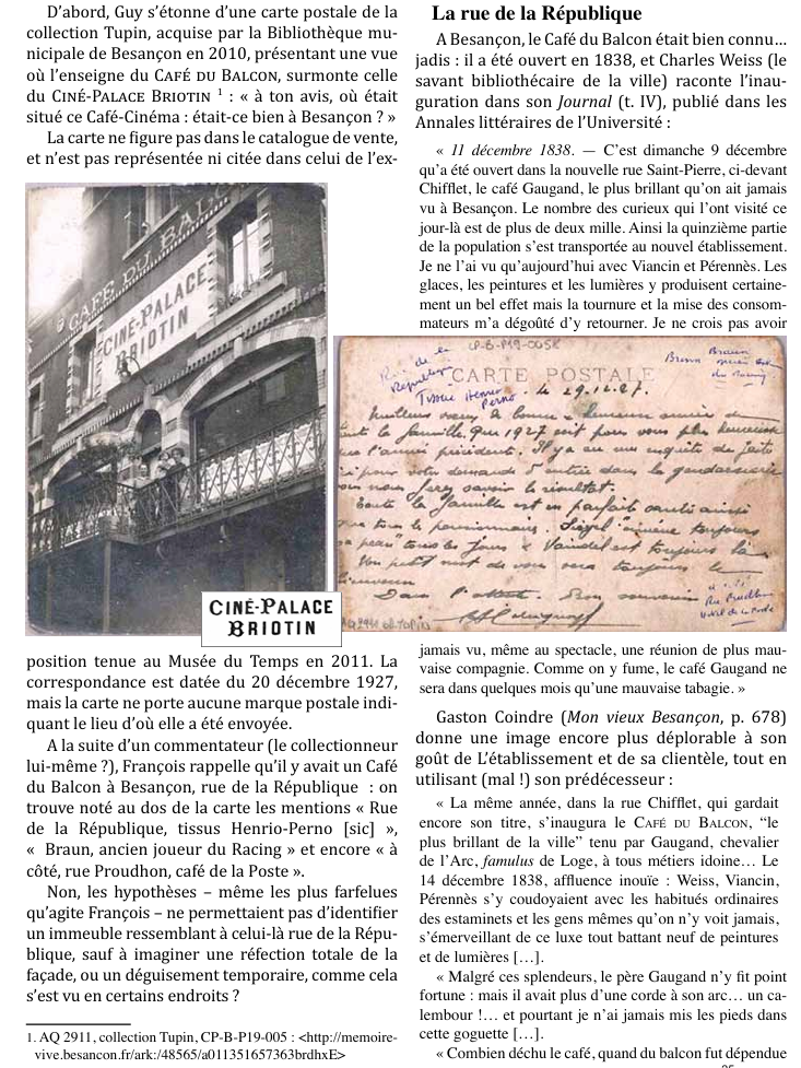 Bulletin n°58 Le café du Balcon et le ciné Palace Briotin (Besançon)