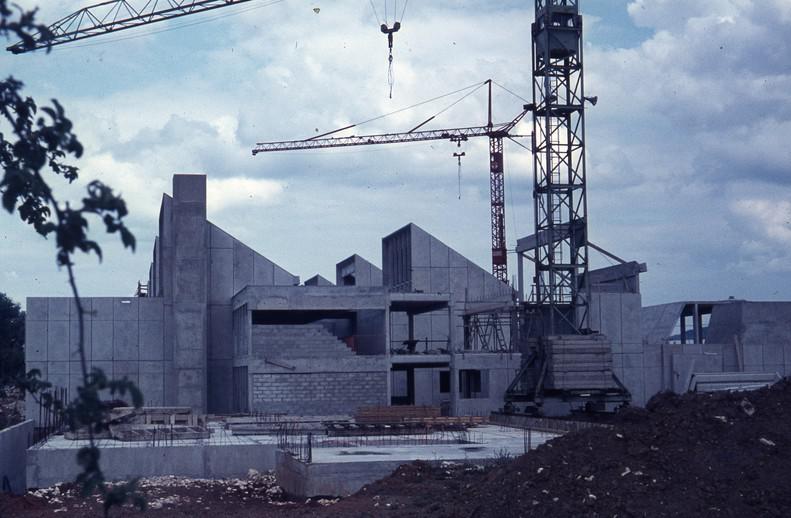 - 1975 L’inauguration du 16 mai se déroule en l’absence des deux architectes, L Sert ayant refusé que son nom apparaisse. Deux tranches de construction vont s’enchaîner, l’ensemble des ateliers puis le bâtiment administratif, l’auditorium, … La réception définitive a lieu en mai 1975.